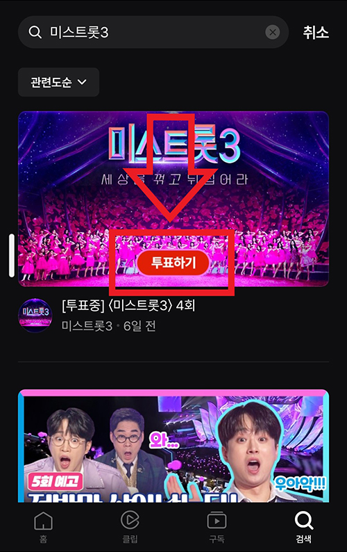 3. 검색란에 '미스트롯3'을 입력합니다.