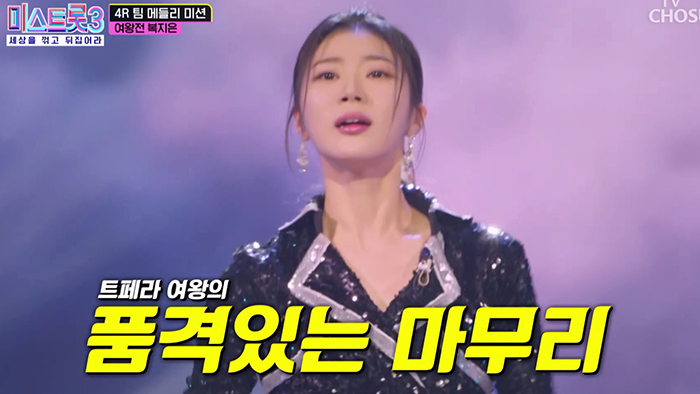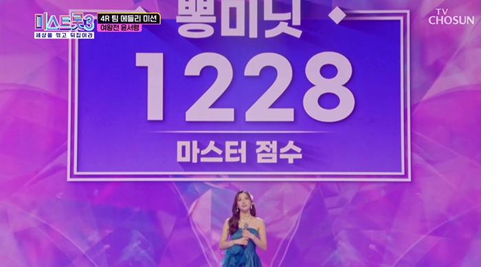 미스트롯3 여왕전 4라운드 1차 팀메들리와 함께 2차 여왕전의 점수를 합산하여 최종 순위를 결정합니다. 마스터 1300점, 관객 평가단 200점입니다.
