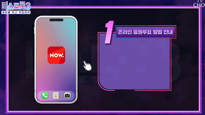 미스트롯3 투표는 스마트 폰에서 네이버의 "NOW." 앱 설치가 되어 있으면 가능합니다.