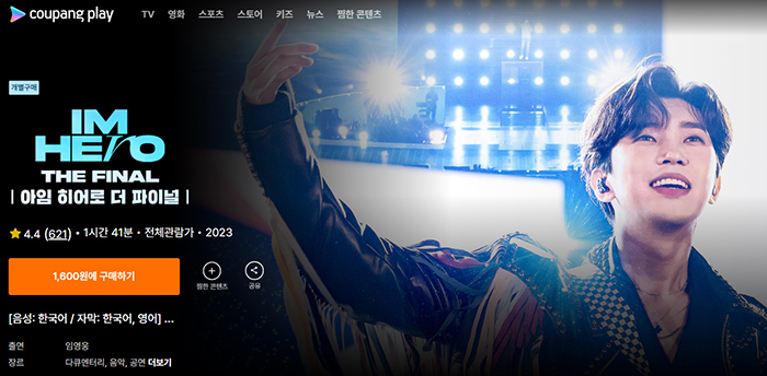 개별구매(1,600원)로 'IM HERO THE FINAL' '쿠팡 플레이'에서시청하실 수 있습니다.