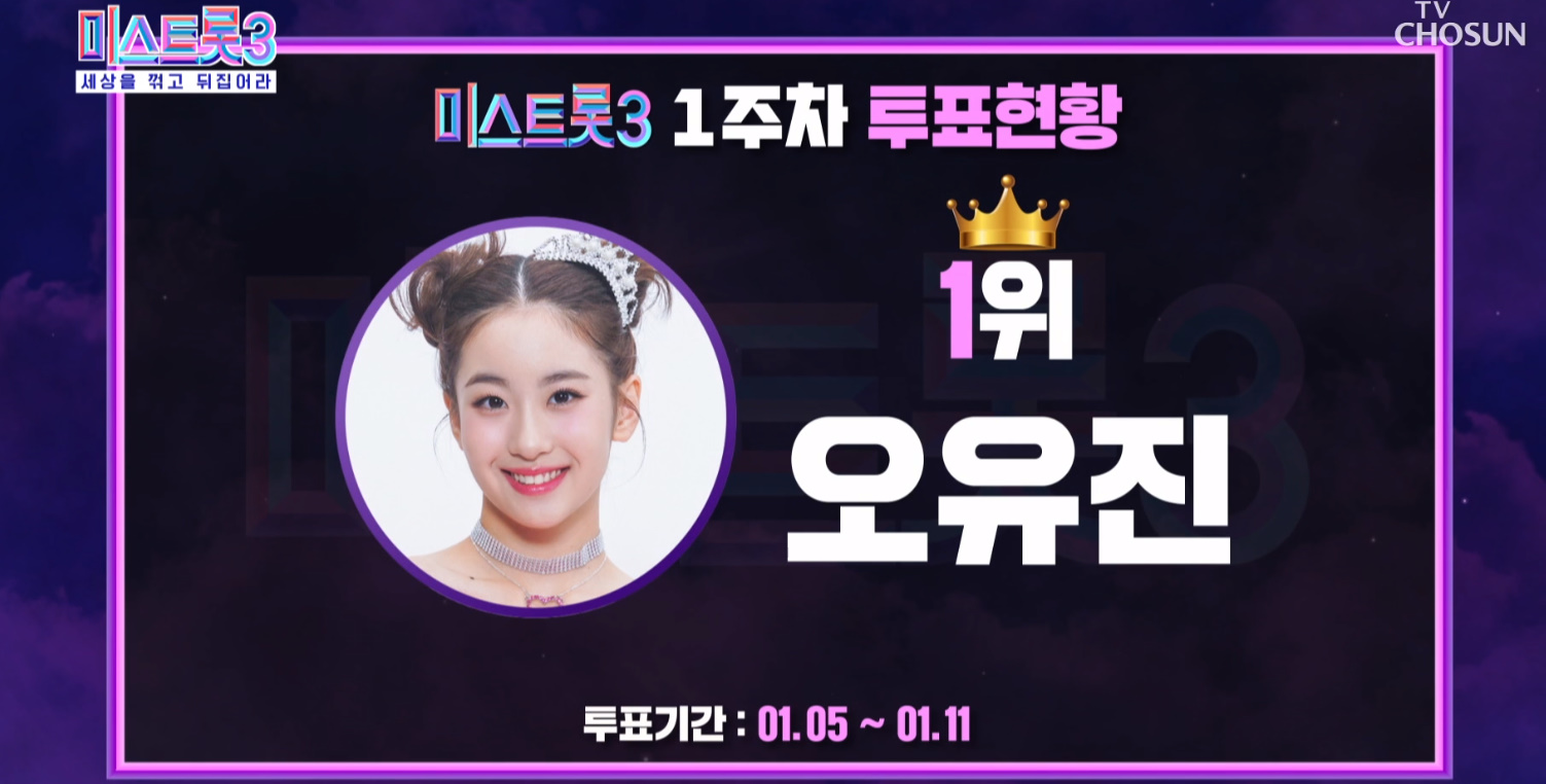 미스트롯3 오유진 2R 진: 오유진 1차 국민투표 1위:오유진