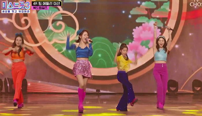 미스트롯3 4라운드 결과 팀메들리 결과 4라운드 팀메들리 순위 4라운드 팀메들리 점수 4라운드 진출자 여왕전 결과 5라운드 진출자 명단 뽕커벨, 유진스, 복드림걸즈, 뽕미닛, 트로나민C