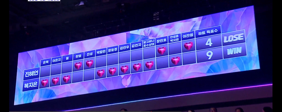 (6) 3라운드 1:1 데스매치 진혜언 VS 복지은 (하트 4:9 - 복지은 4라운드 진출)